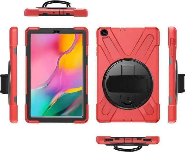 • HEAVY DUTY SHIELD CASE COVER - Designed to fit the Samsung Galaxy Tab A 10.1. Specific cut-outs for the Galaxy Tab A 10.1 2019 T510/T515's charging ports, front and back camera, home button, earphone jack, and volume/power controls. This case gives you total access to your tablets features and functions such as capturing photos/videos, syncing or charging without having to remove the case. Built-in hand strap, kickstand, and includes carrying shoulder strap sling.