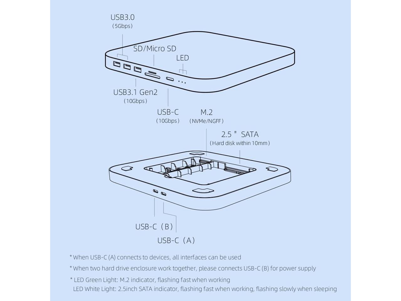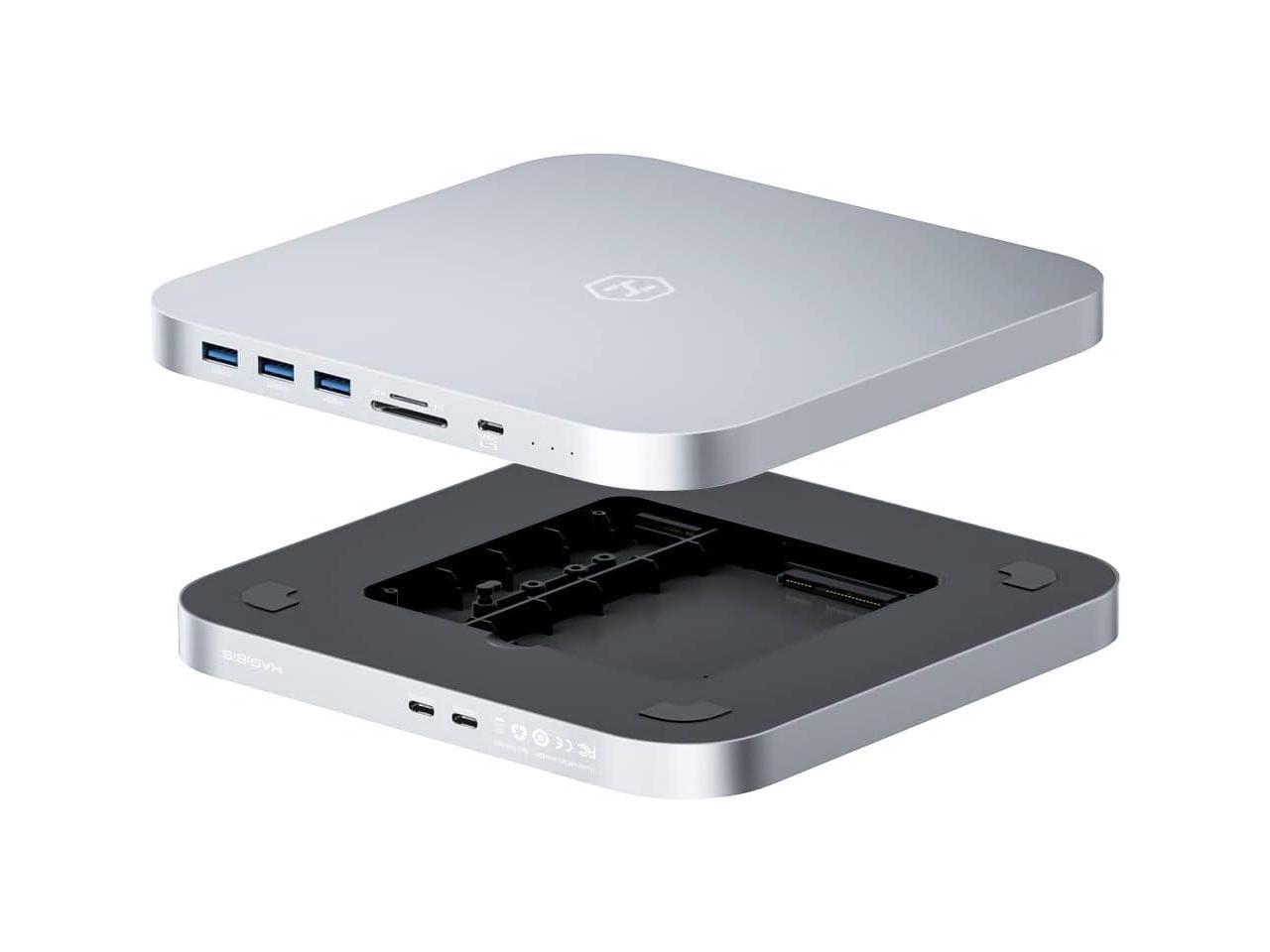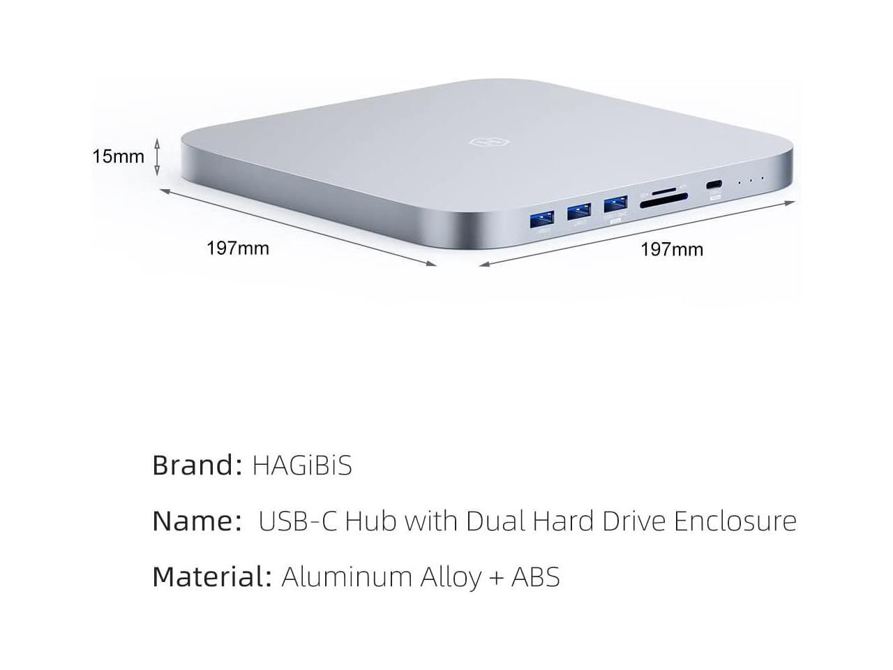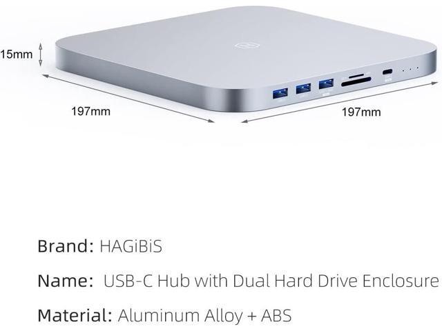 Hagibis USB-C Hub with Dual Hard Drive Enclosure, Type-C Docking Station for Mac Mini M2, Mac Studio M1 Max Ultra with 2.5inch SATA, M.2 NVMe NGFF, USB 3.1 Gen2, USB-C, SD/TF, 2 USB 3.0 (MC25 Pro)