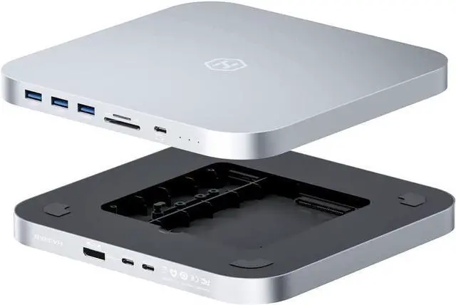 Multiple interfaces: Hagibis Mac Mini Dock with M.2 NVMe/NGFF, 2.5inch SATA hard drive enclosure, DP1.4, 10Gbps USB3.1 Gen2, 10Gbps USB-C, 2 5Gbps USB3.0, SD/Micro SD card slot. Various interfaces meet all your needs