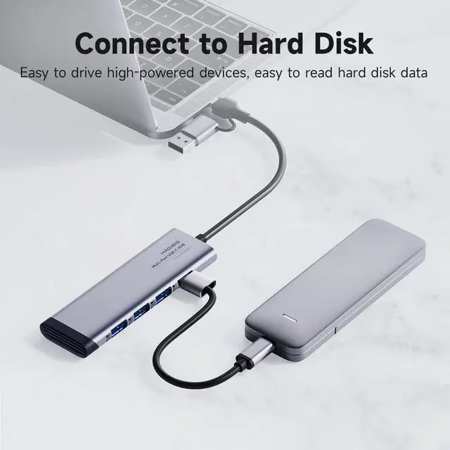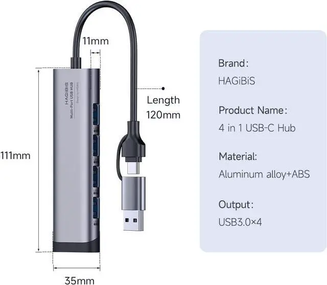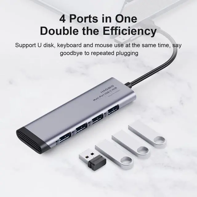 All in One Solution: Hagibis 4-in-1 USB C hub with 4 USB 3.0 ports allowing you to connect a keyboard, USB driver, or external Disk to the laptops