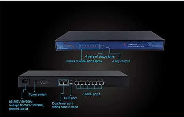 8 serial ports all support two sockets ,and all can send data to two different servers when work as Client.