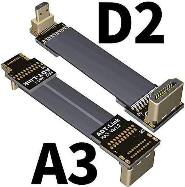ADT-LINK FPV Cable for HDMI Micro Mini Flat Camera Connector 5cm-50cm Flexible Wire Line 18Gbps 4K@50/60 2160p for HDMI2.0 for FPV Camera (5cm,A3-D2)