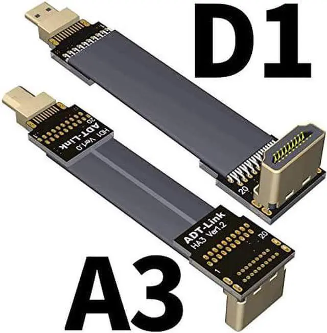 ADT-LINK FPV Cable for HDMI Micro Mini Flat Camera Connector 5cm-50cm Flexible Wire Line 18Gbps 4K@50/60 2160p for HDMI2.0 for FPV Camera (45cm,A3-D1)