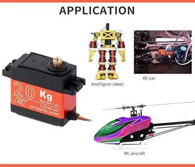 The middle shell is made by CNC machining of aluminum alloy. The surface is anodized, which helps the motor to dissipate heat, improve the strength of the servo housing, and has a stylish appearance.