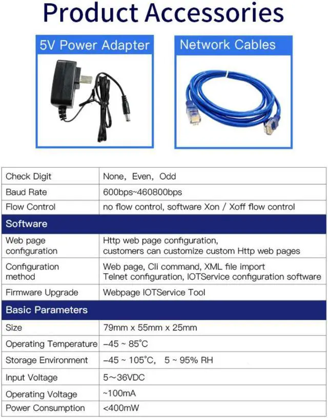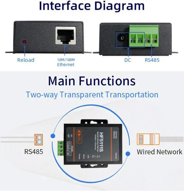 HF HF5111S RS458 Serial to Ethernet Modbus Server Supports Modbus RTU to Modbus TCP DTU Model MQTT Free RTOS Serial Port Transmission Converter Serial Server