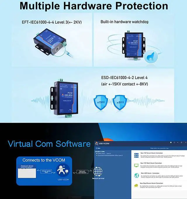 * Main Function * -- This RS485 to ethernet adapter can realize bi-directional transparent transmission between RS485 and network.Support Modbus Gateway,Modbus RTU to Modbus TCP, Modbus Polling.Support MQTT/SSL/Modbus RTU to JSON/SNMP/Telnet/Edge Computing
