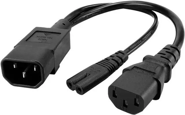 1FT C14 Male PDU Style Computer Power Extension Cable Y Splitter Power Plug Cord (C14 to C7+C13)