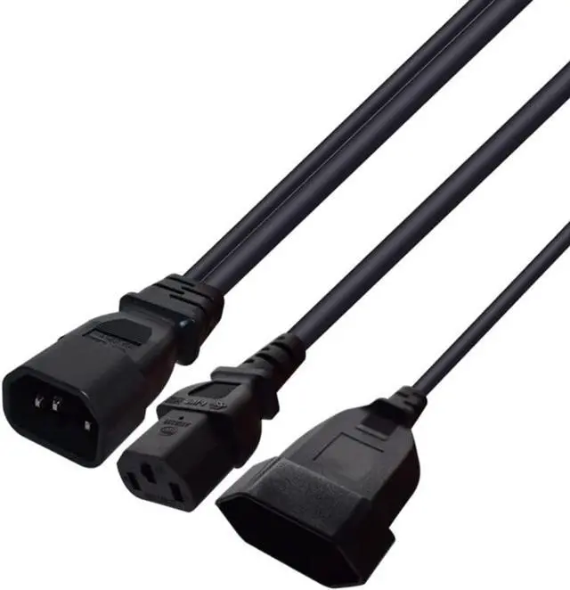 1FT C14 Male PDU Style Computer Power Extension Cable Y Splitter Power Plug Cord (C14 to C13+EU)