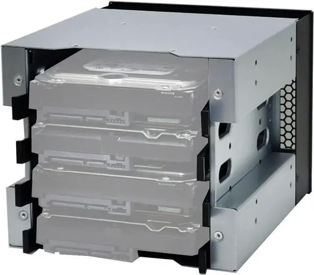 The 4-bay hard drive cage occupies 3-Bay optical drive bays, and it can install 4 x 3.5-inch hard drives.