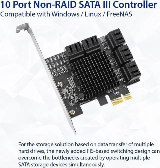 Supports 10-port 6Gb/s SATA III interface,Supports Port Multiplier,Supports Hot-Plug,Supports drive power control and staggered spin-up.Supports SATA Partial / Slumber power management state.