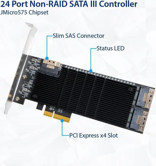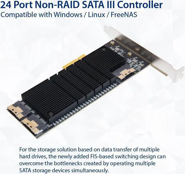 Supports 24 port 6Gb/s SATA III interface,Supports Port Multiplier,Supports Hot-Plug,Supports drive power control and staggered spin-up.Supports SATA Partial / Slumber power management state.