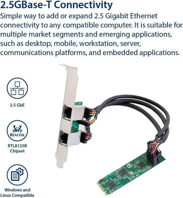 2.5 Gigabit network card Compatible with a broad range of operating systems, including Windows 10, 8/8.1, 98SE, ME, 2000, XP, XP-64bit, Vista, Vista-64bit, 7, 7-64bit, Linux