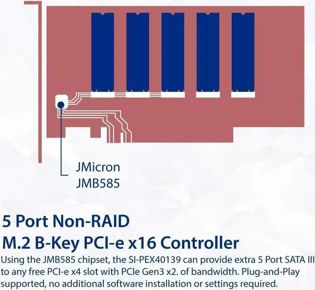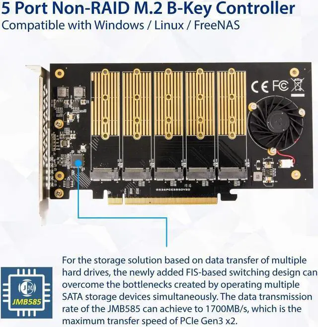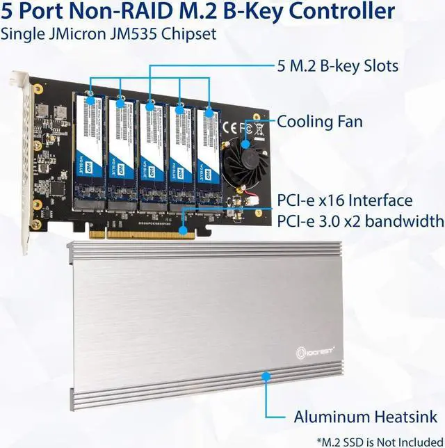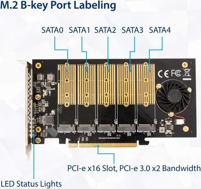 Add 5 Next generation form factor (NGFF) M.2 SATA SSDs to your computer through PCIe x16 slot