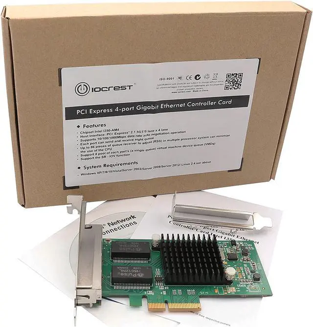 I/O Crest 4 Port Gigabit Ethernet Intel i350-AM4 Chipset PCI-E X4 Network Interface Card NIC
