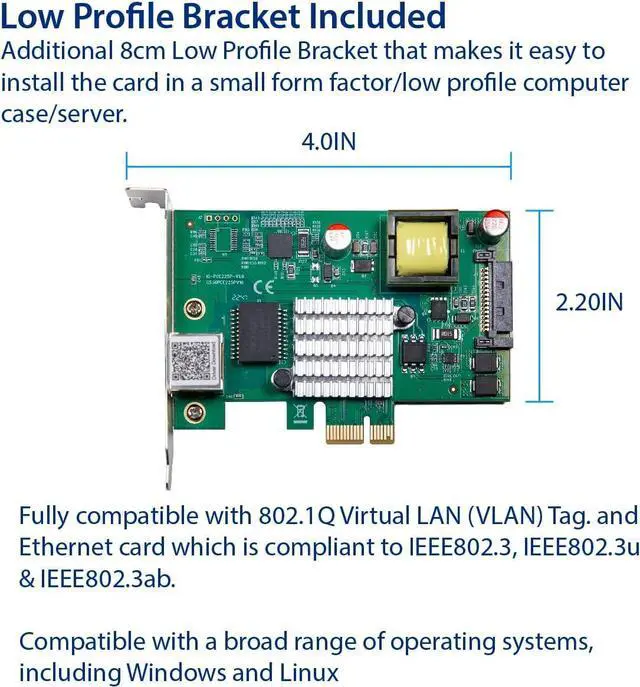 Advanced features such as VLAN, jumbo frames, and Energy Efficient Ethernet (EEE) for versatile application.