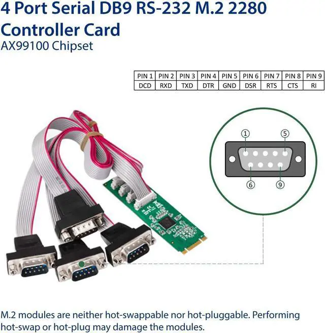 AX99100 Chipset Supports RS-232 Bi-directional speeds up to 25 Mbps per port full Serial modem control Supports hardware, Software flow control. Even, odd, none, space and mark Parity. Special baud rate (option). multi-drop application for 9-bit mode