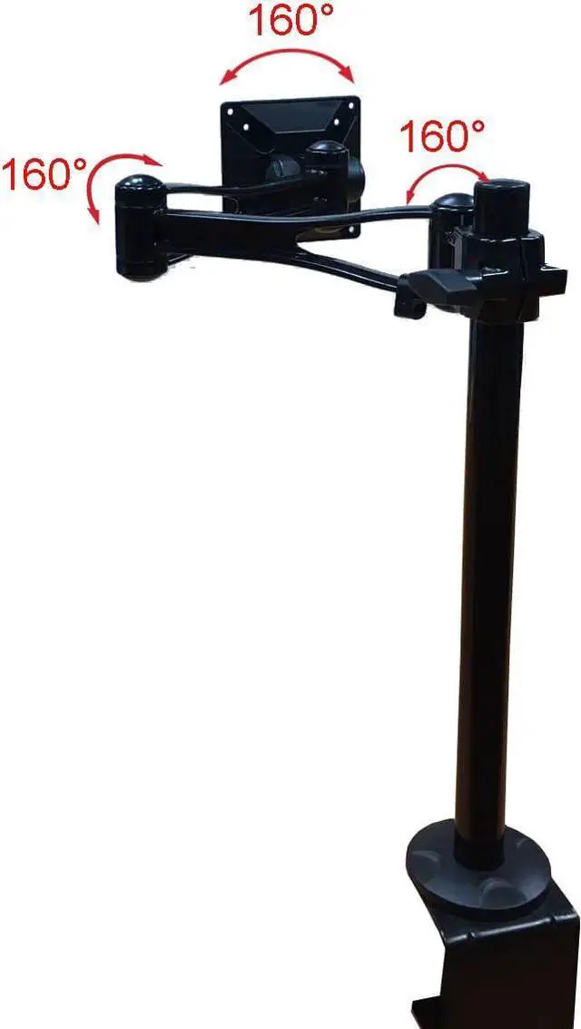 Height adjustable 15.748 inches range. The monitor arm can tilt 60 degrees up and 60 degrees down, and swivel 180 degrees side-to-side, VESA panel can rotate 360 degrees. With built-in cable management, keeping your wires ordered and neat.