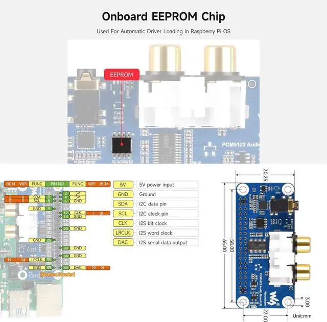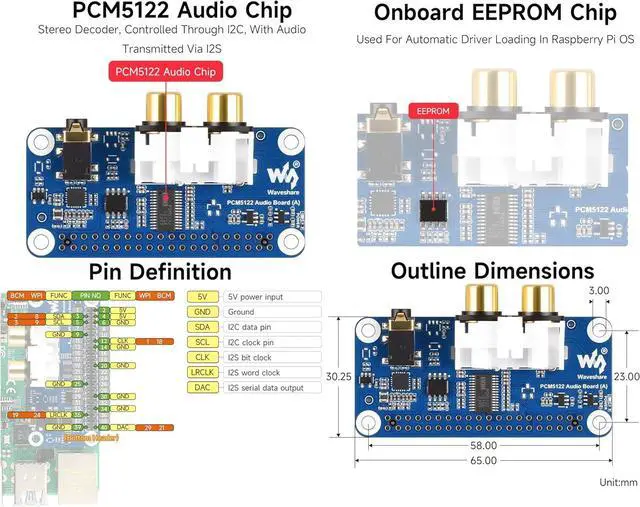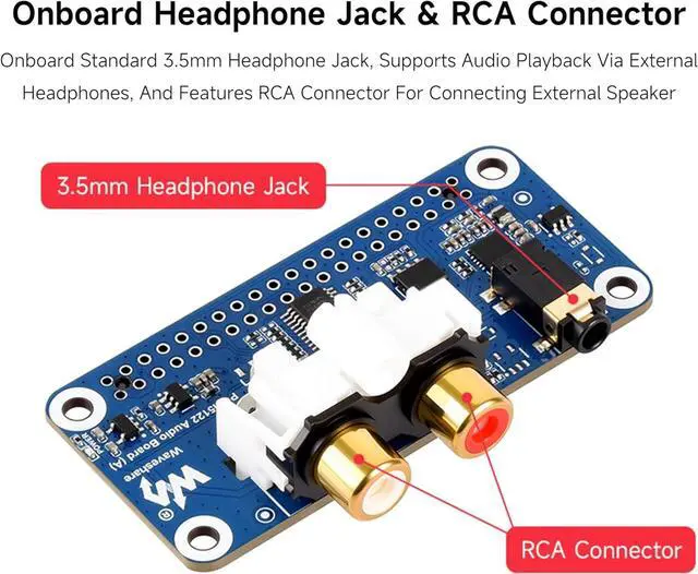 Waveshare PCM5122 Hi-Fi I2S DAC Audio Board for Raspberry Pi, Compatible with 40-Pin GPIO Header, Stereo Encoding/Decoding, Supports Audio Playback- Raspberry Pi Compatibility: Designed for the Raspberry Pi series, the board is based on the 40-pin GPIO header, ensuring easy integration with all compatible Raspberry Pi models.
