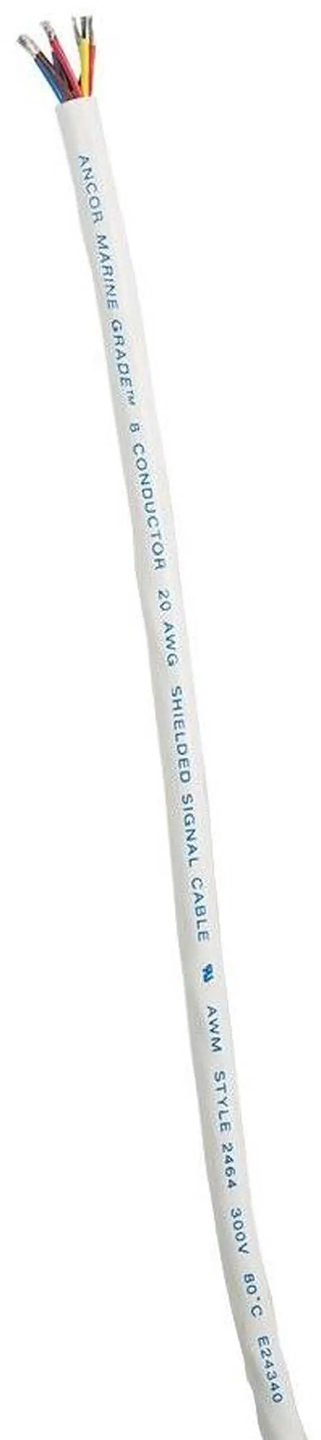 Cable Model: 158025 Ancor round signal cable features black, red, green, blue, brown, orange, purple and yellow Marine Grade primary conductors (correctly color-coded to ABYC standards) in a white common jacket that is made for easy removal while providing the best abrasion resistance available. These cables exceed UL 1426 standards and are made from the highest quality ultra flexible (Type 3/Class K) tinned copper stranding that provides maximum protection against corrosion and electrolysis while resisting fatigue due to vibration and flexing. The premium vinyl insulation is rated at 600 volts, 105 deg C dry and 75 deg C wet, stays flexible even in extreme cold (-40 deg F/C) and resists salt water, battery acid, oil, gasoline, heat, abrasion and ultra-violet radiation.
