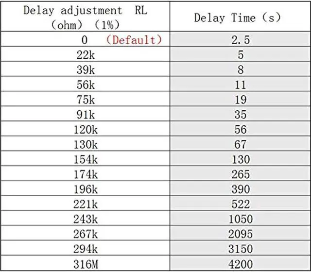 Please read the following form for resistance value corresponding to the typical delay time.