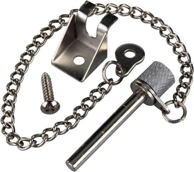 The universal security pin is commonly found on refrigerator doors, but can also be used for window and sliding doors. Easy to install anywhere you need to keep a door or window closed during travel. Made with quality parts and materials.