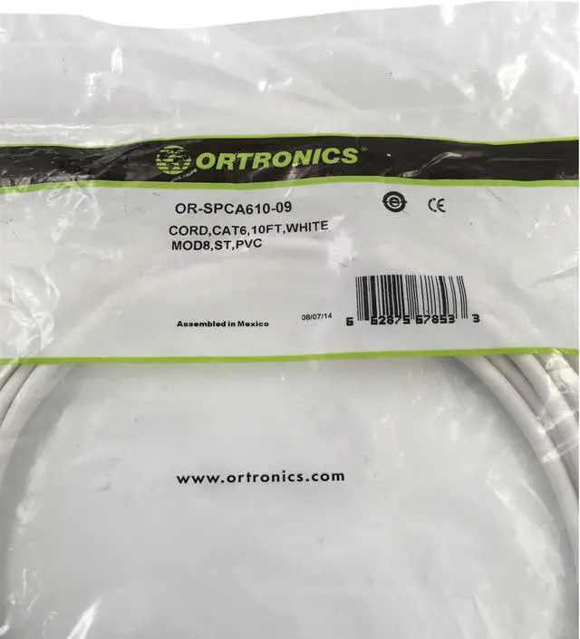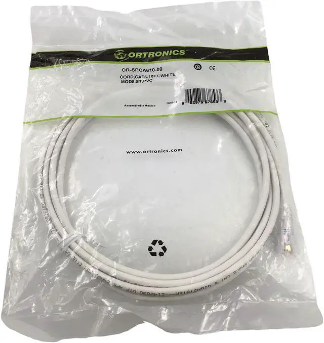 Package Includes: Ortronics TechChoice Category 6 Modular Patch Cord 10' White OR-SPCA610-09