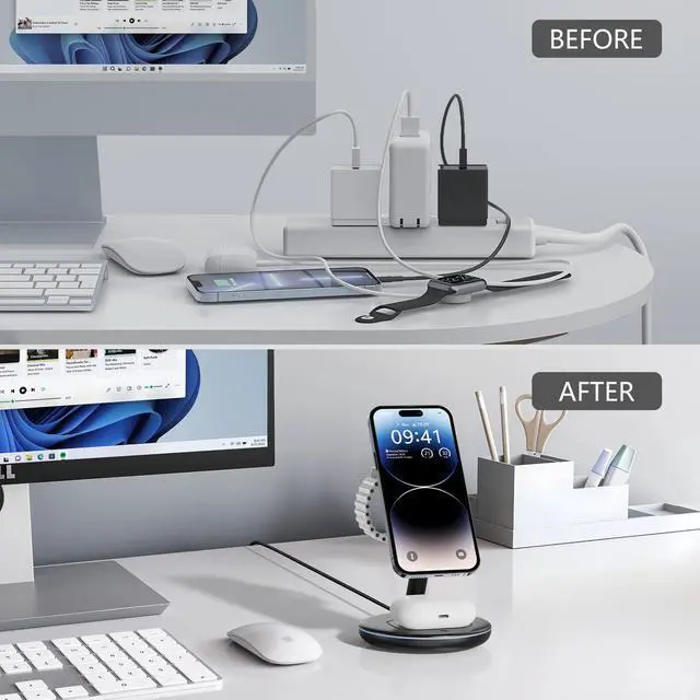 AirPods 4/3/Pro designed with the Mag-Safe Wireless Charging Case can be charged with this product.