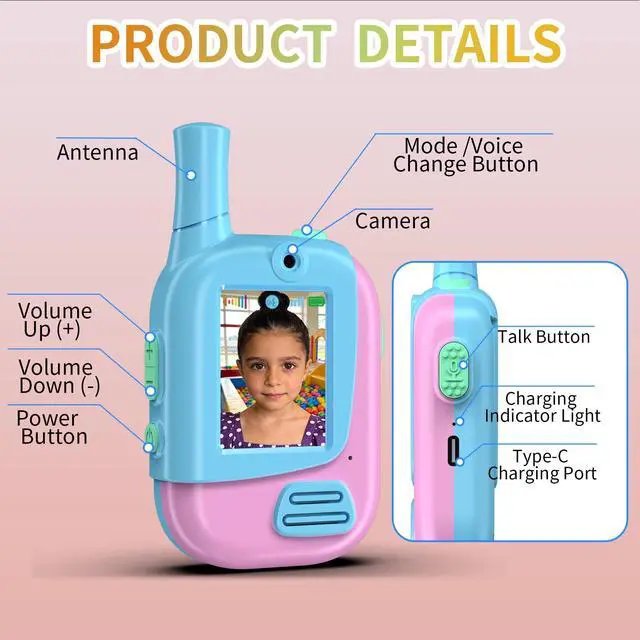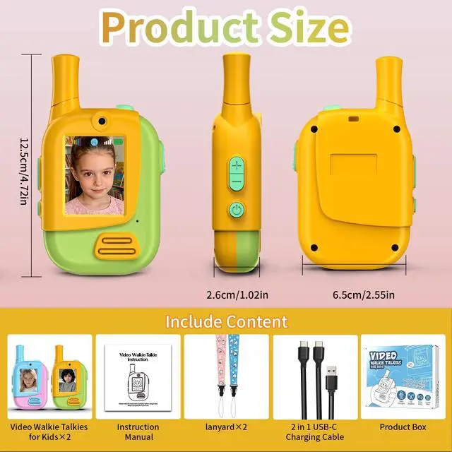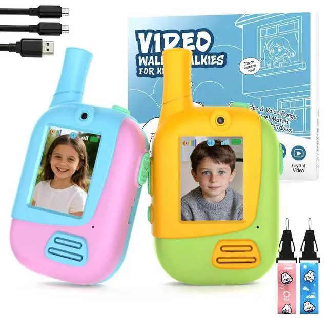 Upgraded Video Walkie Talkies for KidsSay goodbye to traditional walkie talkies that can only transmit sound. Our product innovation features video calling function, allowing children to see each other intuitively and achieve seamless real-time interaction, adding fun to outdoor exploration, camping, or playing with friends.
