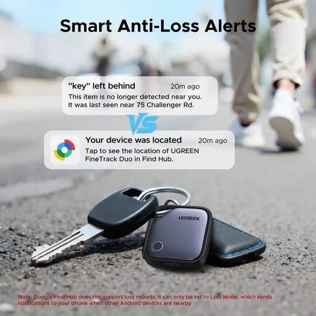 Lost Item Alerts & Lost Mode: When your key finder moves out of range, the app sends a lost alert with the last known location. If your item is confirmed lost, you can activate Lost Mode and leave your contact information so nearby Apple or Android devices can remotely access it and help locate your tracker, making recovery quick and easy. (The above functions for Android devices need to activate Lost Mode before use.)