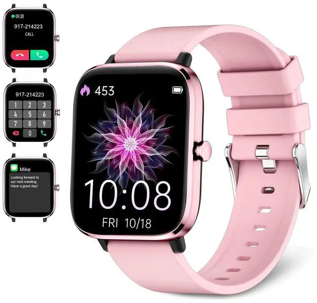 2024 Newly Released Smart Watch with 1.69'' Full Touch Screen--Call Receiving/Dialing/Heart Rate/Blood Pressure/ Step Counter/IP67 Waterproof/ Pink