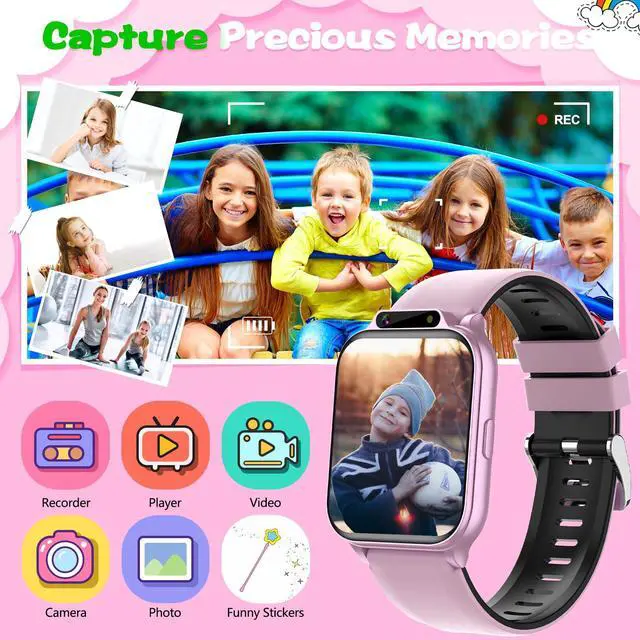 Perfect Smart Watch for KidsThe smart watch for kids with sleep monitor, heart rate, blood oxygen, stress,100+ sport modes, DIY dial, voice assistant, SOS, music, sedentary/drink water reminder, alarm clock, Torch, class mode, camera, games, storybook, voice recorder, learn card, calculator, pedometer, multi-languages, bluetooth call and many other functions. This is an excellent gift for boys and girls for birthdays, Easter, Christmas, holidays, and vacations.