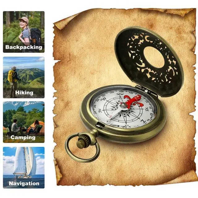 Vintage Brass Scout Compass with Waterproof DesignAntique brass housing resists corrosion, while the liquid-filled capsule ensures smooth needle movement even on bumpy trails. Perfect for boy scouts and outdoor newbies.