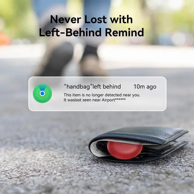 Lost Mode & Smart AlertsIf an item with our smart bluetooth tracker tag is left behind and the bluetooth connection to your device is lost, the Find My app will send you a missing item notification. By enabling Lost Mode and providing your contact information, the key finder allows nearby Apple devices to access your details.