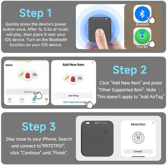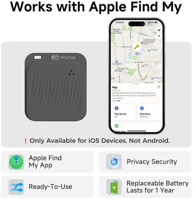 2 Apple Find My APP Connect your tracker tag in seconds - simply open the Find My App and tap to pair. No additional apps or accounts needed. Once connected, enjoy precise tracking through Apple's secure Find My network, which can locate your items even when they're offline by using nearby Apple devices. For best performance, ensure your iOS device is updated to the latest version and Bluetooth is enabled. Exclusive to Apple devices - NOT compatible with Android.