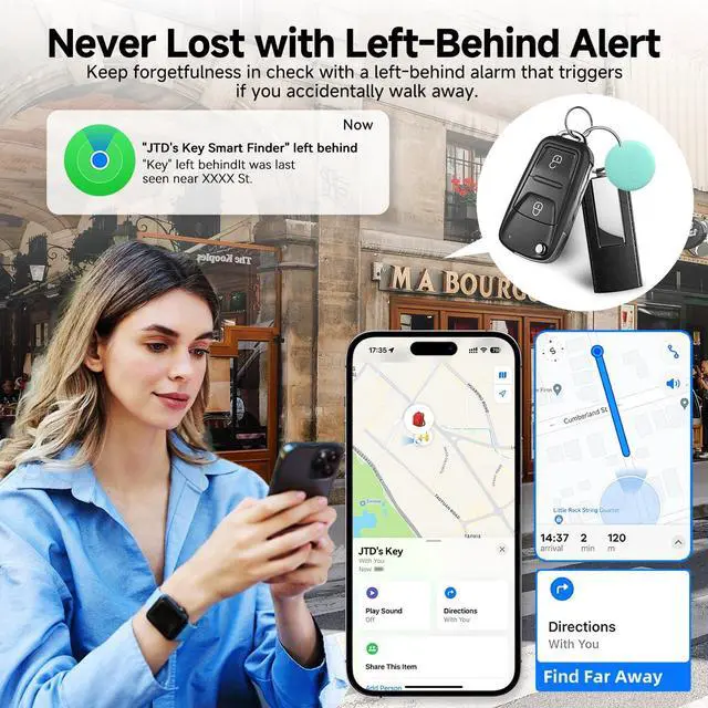 1.2026 Upgraded for Apple Find My Network Leverage Apples billion-device network to locate your items on a map, even when theyre miles away. No subscription or monthly fees ever. Easily set up in seconds within the Find My app (iOS only). Includes Precision Finding for directional guidance when nearby.