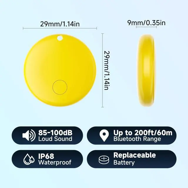 4.Loud 80dB Ringer & Ultra-Light Design Play a clear, penetrating sound to find items quickly in couch cushions or crowded rooms. At only 6g each, these slim, smooth tags wont scratch your belongings or add bulk.