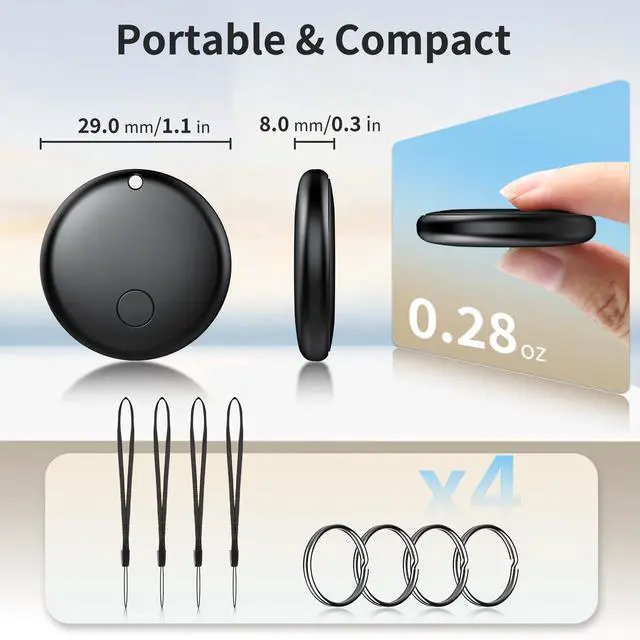 Work With Apple Find MyThe 4 Pack-air tracker tags have many fuctions: sound alerts,long-distance navigation tracking, left-behind reminders, lost mode, sharing with up to 5 contacts, and privacy protection. Within 50 feet,you can click "play sound" to find your things in Find My app. but beyond 50 feet, you track your things with the help of a global network of hundreds of millions of Apple devices