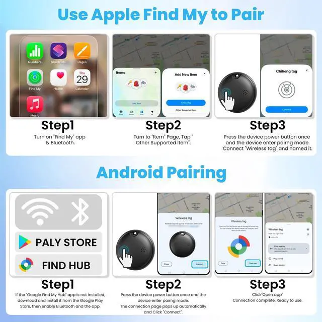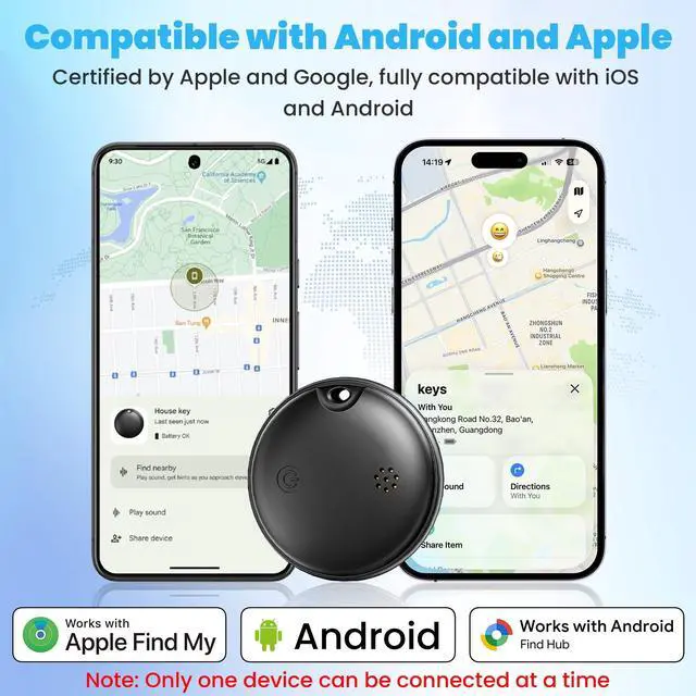 Designed for iOS & Android usersOur tracker tag is certified by both Apple and Google, working seamlessly with Apple's Find My app for iOS and Google's Find Hub for Android. Perfect for families with mixed devices or if you ever switch phones. (Note: Pairs with one system at a time. Switching systems requires resetting the tag.)