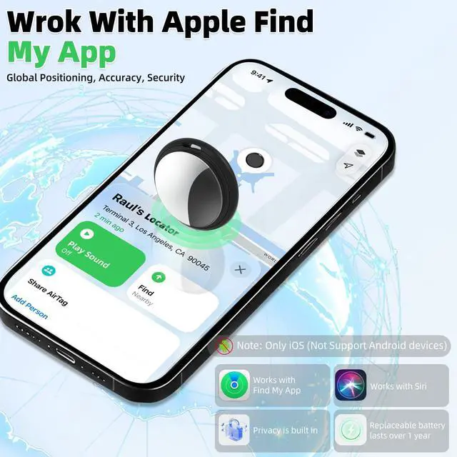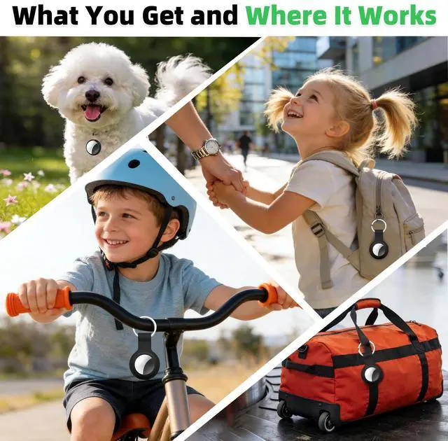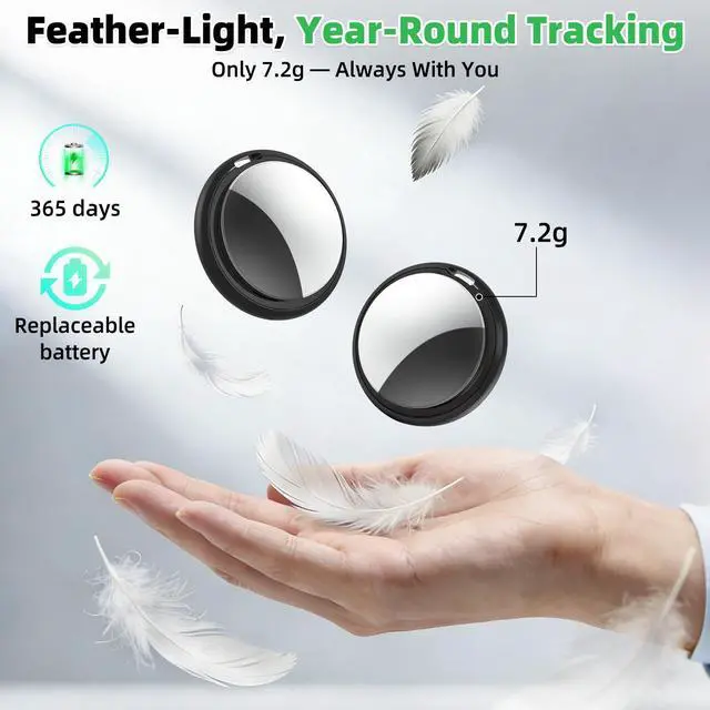 Real-Time Tracking Keep Essentials Under Control: 4-pack (2black + 2white) to meet your daily needs. Effortlessly track your luggage, wallet, keys, and other valuables using the Bluetooth trackerno more stress about losing them. Connects to Find My network with the help of billions of iOS devices. No subscription fees required. Easily locate your items using the Find My App (iOS only). Within Bluetooth range (~200ft/60m in a straight line), trigger the built-in beeper via your phone to find your items quickly.
