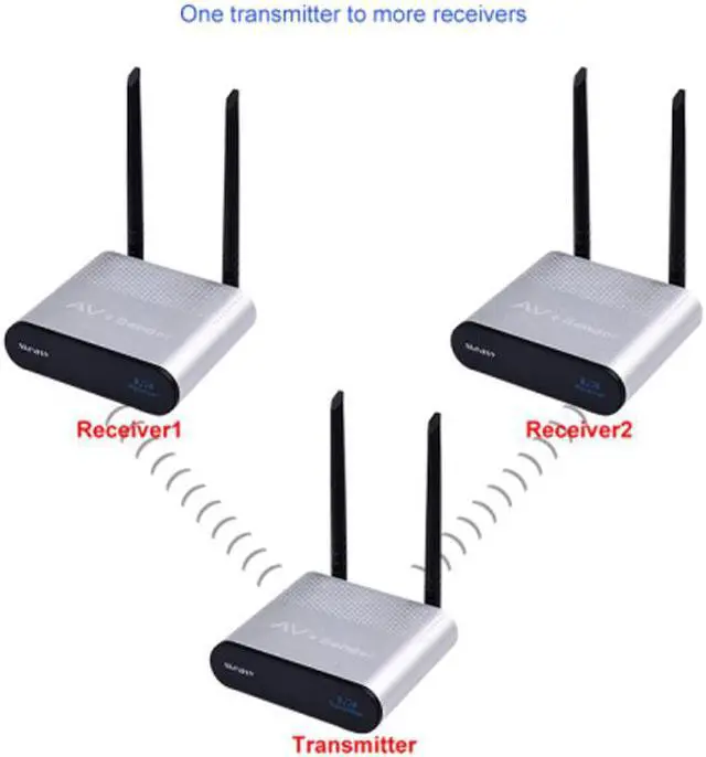 Dynamic Range: 90dB Left and Right Channel Isolation85dB Feature - With digital display, channel switching and power on/off status at a glance. - Support 8 groups of channel selection, effectively avoid wireless signal interference such as wireless routing. - Support 1 transmitter and more than one receivers at the same time, when keeping Transmitter and receiver setting at the same channel. - Unobstructed transmission distance up to 100 meters, support for wall transmission. - Support 433MHz superheterodyne infrared remote control signal wireless backhaul, compatible with 38KHz infrared carrier remote control signal. - Support PAL/ NTSC system and stereo audio transmission.
