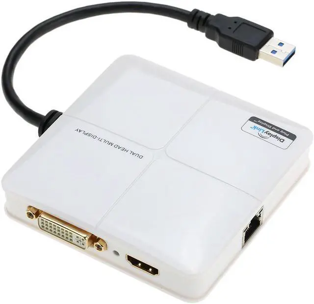 This 3 in 1 USB 3.0 multi ports adapter with DVI HDMI and Gigabit Ethernet port is convenient to connect up to two monitors and displays which support HDMI up to 2560 * 1440 and DVI / VGA 1920 * 1200. A HDMI port and DVI port with VGA adapter for mirroring/extending your desktop to external monitors. What's more, the Gigabit Ethernet port supports 10/100/1000Mbps speeds for high speed networking.