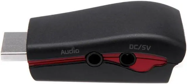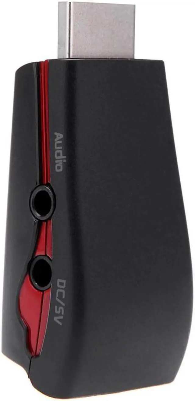 This kind of HDMI A Type to VGA video converter can convert digital HDMI signal into analog VGA video signal. When you watch movies and play games on traditional VGA monitor or projectors, this product can note only allow you to enjoy its high definition image, but also can let you enjoy the high-quality sound effect. And, this item is powered by HDMI. If the HDMI cannot supply the power, you can also connect your power adapter to the DC 5V female via the included USB charge cable for charging and getting power.Features:Interface: HDMI Input, VGA/Audio Output. Upgrade Version, integrated with Audio output.Enable PC / Laptop / DVD / for PS3 / for Xbox360 / Sky HD / for Apple TV and other HD device to be connected with VGA monitor / projector or other displayer.Convert the video signal from digital to analog.Conversion: it can convert complete HDMI into VGA Video.Compliant with HDMI 1.3 standard.Powered by HDMI source, no external power adapter required (if needed, you can connect your power adapter or computer to the DC 5V female for charging and getting power).Plug and Play, no software is needed.Supports Analogue Video output up to 1080p with 10-bit DAC.Supports 165MHZ/1.65Gbps per channel (6.75Gbps all channel).With compact portable design. Specification:Color: Black, White (Optional)Item size: 5.5 * 2.5 * 1.6cm/2.17 * 0.99 * 0.63inPackage size: 14.0 * 12.0 * 3.1cm/5.5 * 4.72 * 1.22inItem weight: 30g/1.05ozPackage weight: 70g/2.46ozThe charge cable length: 100cm/39.37inchThe audio cable length: 110cm/43.30inchCompatible modes:For Tablet PC PS3 and HDTV