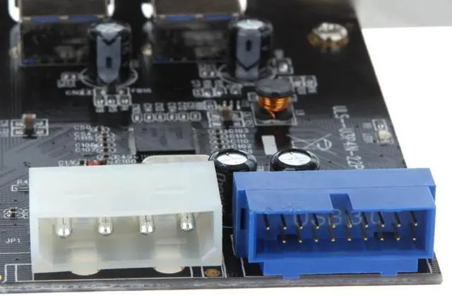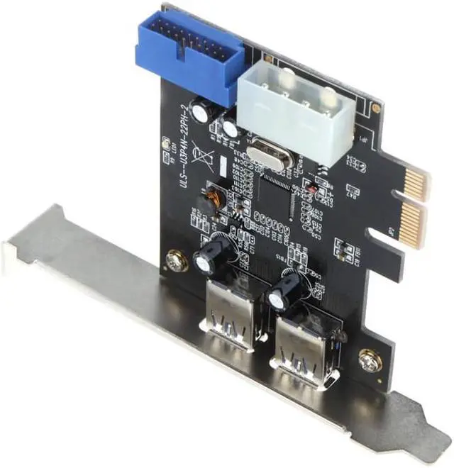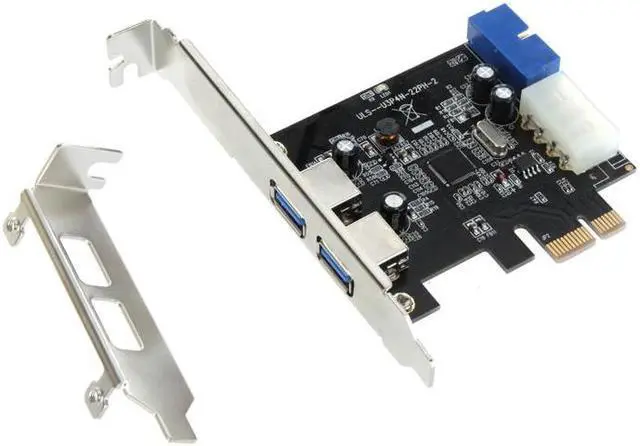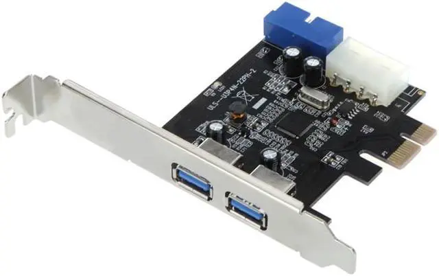 Features:Extend with 2 USB 3.0 downstream ports and 1 USB3.0 19-pin connector(can expand another two USB 3.0 ports) for standard desktop PC.SuperSpeed USB 3.0 is fully compatible with original USB system, peripherals and cables.Fully compliant with one-lane (x1) PCI Express 2.0 specification.TWO external 5Gbps SuperSpeed USB 3.0 ports.One 19-pin internal 5Gbps SuperSpeed USB 3.0 port.Built-in with 4-pin IDE Power Connector for added power source to better support power hungry bus-powered devices.SuperSpeed USB 3.0 offers 10 times performance increase over Hi-Speed USB 2.0.USB 3.0 complies with Intel eXtensible Host Controller Interface (xHCI).Up to 5Gbps maximum transfer rate.SuperSpeed USB 3.0 is backwards compatible with USB 1.0/1.1/2.0 devices (data transfer rate at 1.5/12/480Mbps).Supports PCI Low profile.Ideal connection for digital cameras, scanners, printers, external CD/DVD/Blu-Ray writers, hard disk drives, flash memory drives and etc.Fully Plug-N-Play and Hot Swap compatible.System Requirements:PC with 512MB of RAM and 1.0GHz or faster processor.1 available PCI Express 1.x or 2.x slot.System Support: Windows XP / Vista / Windows7 (32/64 bit)/Windows8 (32/64 bit). Note:To achieve the maximum throughput, the PCI-Express slot must be version 2.0 or higher. Performance per port may decrease if multiple ports are transferring data simultaneously due to limited throughput of the PCI-Express slot.To meet USB 3.0 transfer speed, high quality USB 3.0 cables and devices are required.Supports both 32-bit & 64-bit OSes.Make sure the power is well connected; otherwise you will see a "Power Surge on Hub Port" message error and no 5V bus power in USB ports.Specifications:Certifications: CE, FCC, RoHSItem size: 12 * 8cm / 4.7 * 3.1inItem weight: 48g / 1.7ozPackage size: 15 * 13 * 3cm / 5.9 * 5.1 * 1.2inPackage weight: 115g / 4.1oz