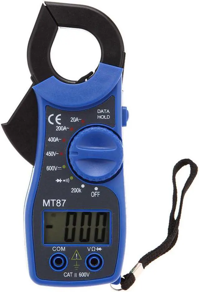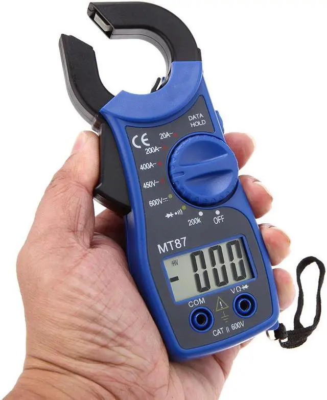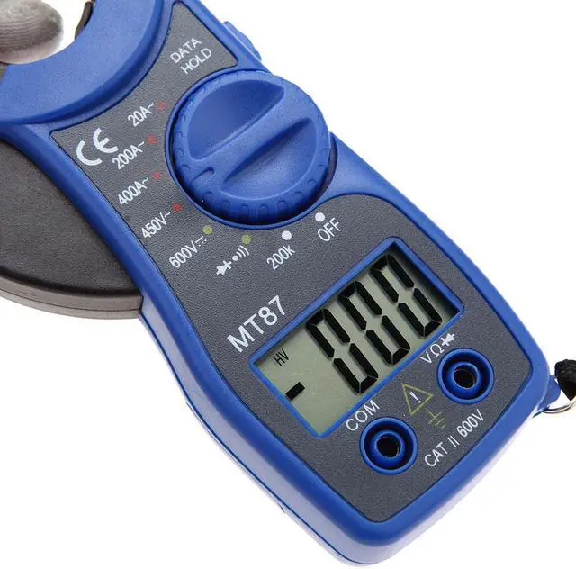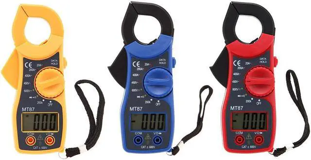 Specifications:Model: MT87Main Color: yellow/red/blue optionalPower Supply: 2 * 1.5V AAA Battery (not included)DC Voltage: 600V 1.0%AC Voltage: 450V 1.0%AC Current: 20A 2.5%, 200/400A 2.0%Resistance: 200k 1.0%Continuity range: 200Sampling rate: 3 times/sItem dimension: 15 * 7.2 * 3cmJaw opening: 25mmItem weight: 118gNotice: There's a slight color aberration between the product and the picture.Package information:Package Size: 16 * 9.3 * 3cm / 6.30 * 3.66 * 1.18inPackage Weight: 177g / 6.24oz This meter features a portable design, 31/2 LCD display and 25mm jaw opening, which can provides various measurements for AC/DC voltage, AC current, resistance, diode and continuity buzzer. It is also with functions of date hold, low battery indication, overload indication, etc. More detailed product information, please refer to the English manual.Features:With 25mm jaw opening.Measuring AC/DC voltage, AC current, resistance, diode and continuity buzzer.Portable design, easy to use.Large LCD, easy to read, Max Display 1999 with data hold.Low battery indication.Overload indication.Manual range operation.