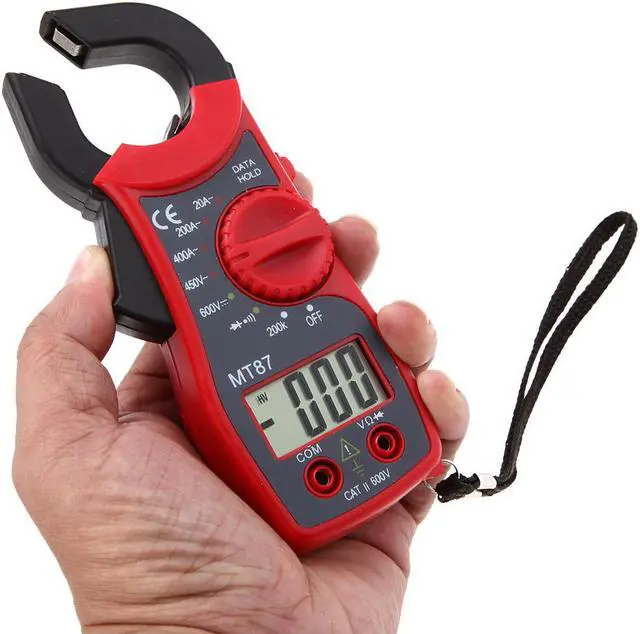 Specifications:Model: MT87Main Color: yellow/red/blue optionalPower Supply: 2 * 1.5V AAA Battery (not included)DC Voltage: 600V 1.0%AC Voltage: 450V 1.0%AC Current: 20A 2.5%, 200/400A 2.0%Resistance: 200k 1.0%Continuity range: 200Sampling rate: 3 times/sItem dimension: 15 * 7.2 * 3cmJaw opening: 25mmItem weight: 118gNotice: There's a slight color aberration between the product and the picture.Package information:Package Size: 16 * 9.3 * 3cm / 6.30 * 3.66 * 1.18inPackage Weight: 177g / 6.24oz This meter features a portable design, 31/2 LCD display and 25mm jaw opening, which can provides various measurements for AC/DC voltage, AC current, resistance, diode and continuity buzzer. It is also with functions of date hold, low battery indication, overload indication, etc. More detailed product information, please refer to the English manual.Features:With 25mm jaw opening.Measuring AC/DC voltage, AC current, resistance, diode and continuity buzzer.Portable design, easy to use.Large LCD, easy to read, Max Display 1999 with data hold.Low battery indication.Overload indication.Manual range operation.