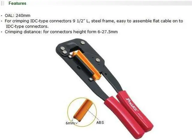 Pro'sKit 6PK-214 IDC Crimp Tool(240MM) Computer Cable Crimping Plier Application: Crimping Material: Carbon Steel DIY Supplies: Electrical Model Number: 6PK-214 Type: other
