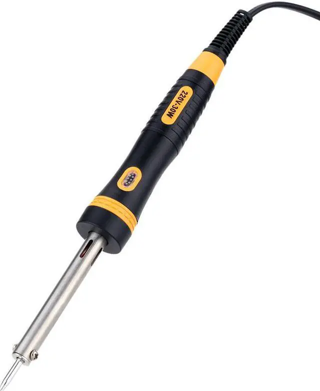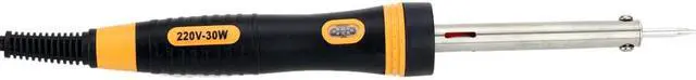 Specifications:Color: Black + OrangeMaterial: ABSPower: 30WWorking Voltage: AC220V / 50HzSoldering Iron Length: Approx. 25cm / 9.84inPower Cord Length: Approx. 123cm / 48.43inItem Weight: Approx. 98g / 3.46ozPackage Weight: Approx. 134g / 4.71oz Do you need a efficient soldering iron? This soldering iron is exactly what you are looking for. It heats up within a couple of minutes, the tip is thin, which makes soldering jobs easily.Features:Stainless steel tip, which is in better antirust capability.This soldering iron is small and portable, very easy to operate.Pencil tip type, which is thin and small, very perfect for your soldering needs.Equipped with long life soldering tip for greater efficiency and long service life.Compact, light weight design with comfortable soft handle reduces operator fatigue.