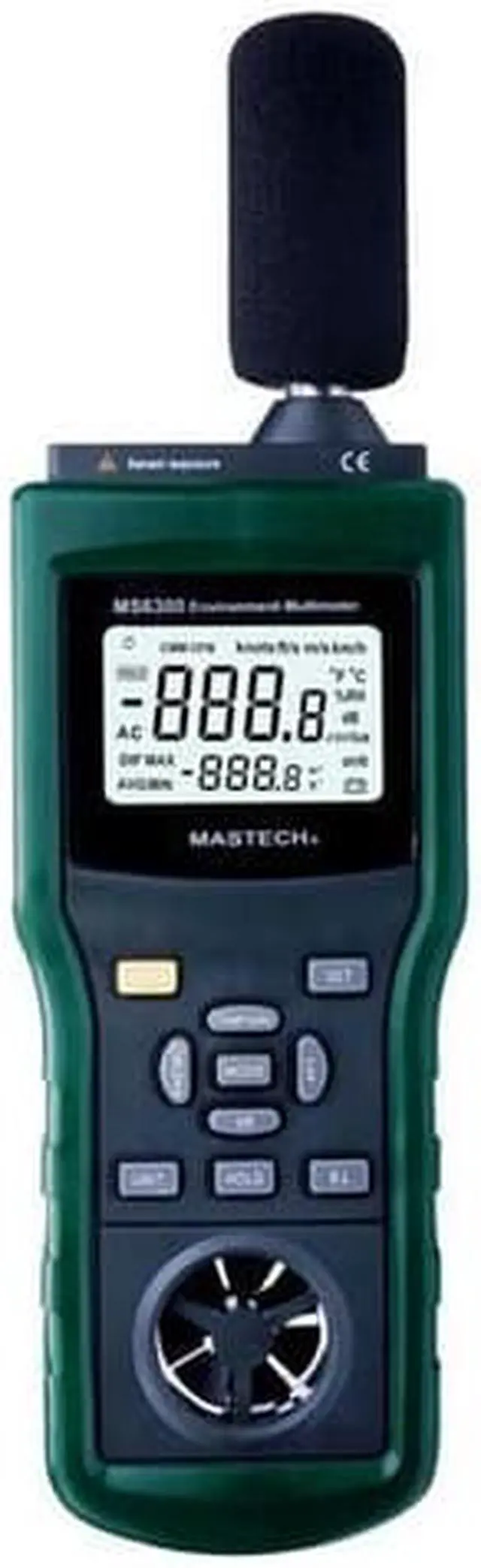 Features: Auto ranging Data hold AVG/MAX/MIN/DIF(MAX-MIN) Low battery display Auto/manual power off Pls note that battery is not included in the package Package includes: 1 * MS6300 Digital Environment Tester 1 * User manual
