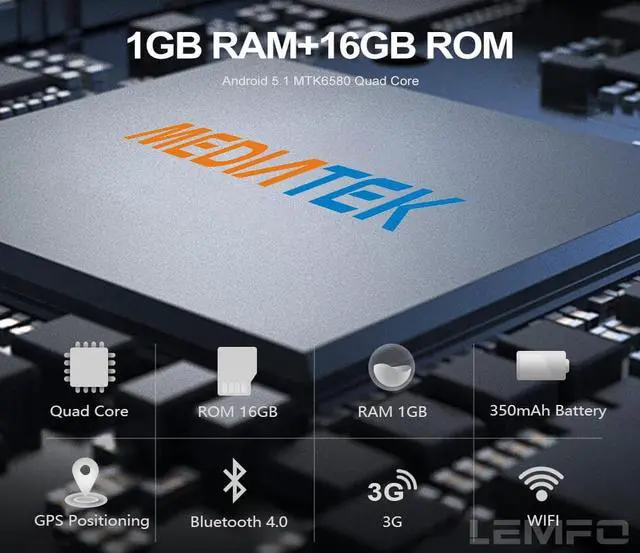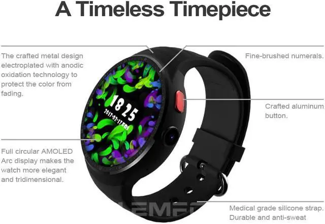 Main features: * 1.39" OLED Round Display 400*400 in resolution * MTK6580 quad core Processor * RAM 1GB + 16GB in flash * OS Android 5.1 * Bluetooth / GPS / WiFi Supported *