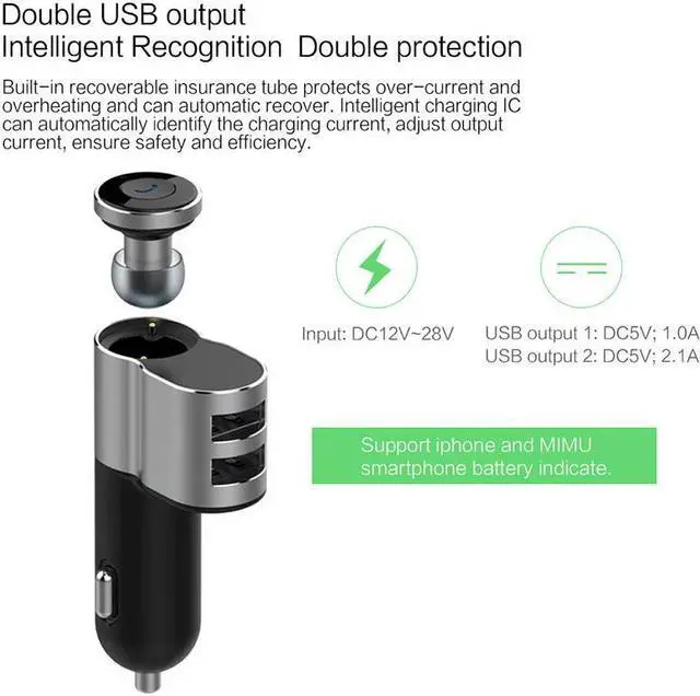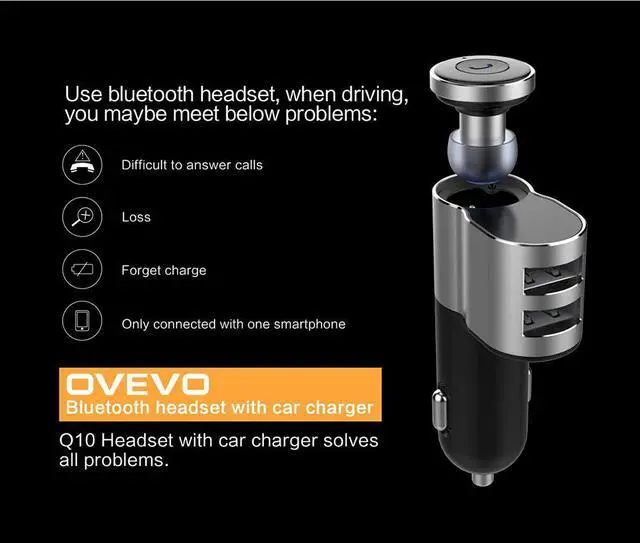 OVEVO Q10 Car Charger Bluetooth Earphone 2 Port USB Auto Charger Fast Charge Support Two Bluetooth Devices For Xiaomi Phone MI5 - Black OVEVO Q10 Car Charger Bluetooth Earphone 2 Port USB Auto Charger Fast Charge Support Two Bluetooth Devices For Xiaomi Phone MI5 - Black